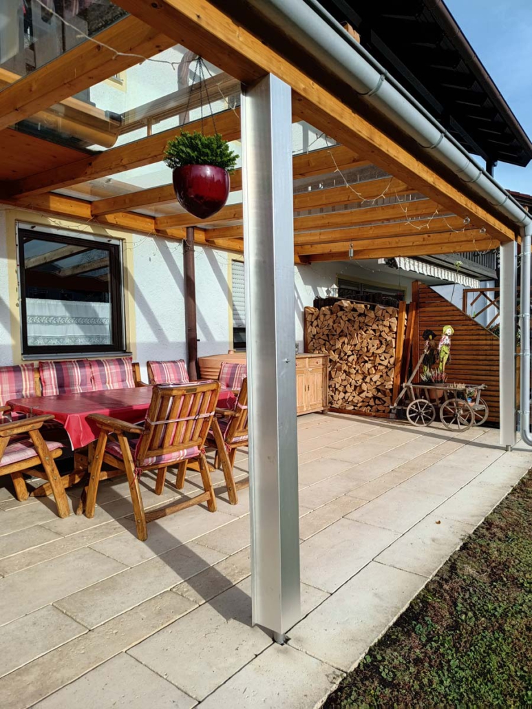 Das Ergebnis ist eine dauerhaft geschützte Holzkonstruktion, die den Witterungseinflüssen standhält und gleichzeitig ihren natürlichen Charakter bewahrt.