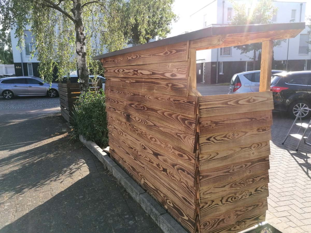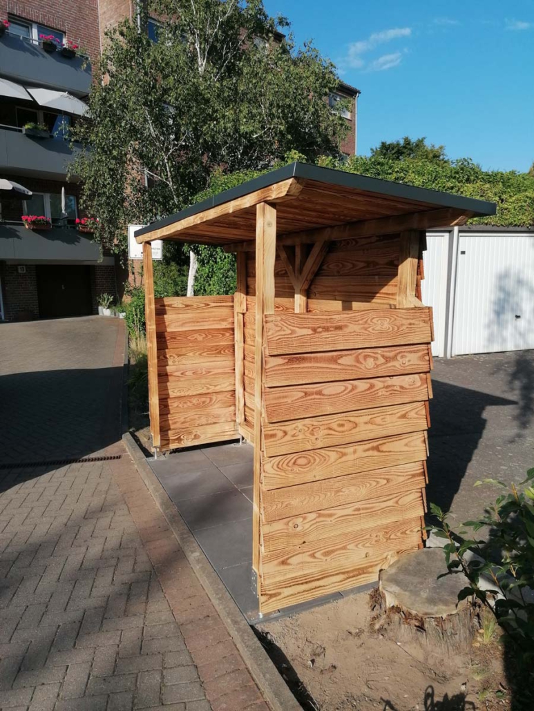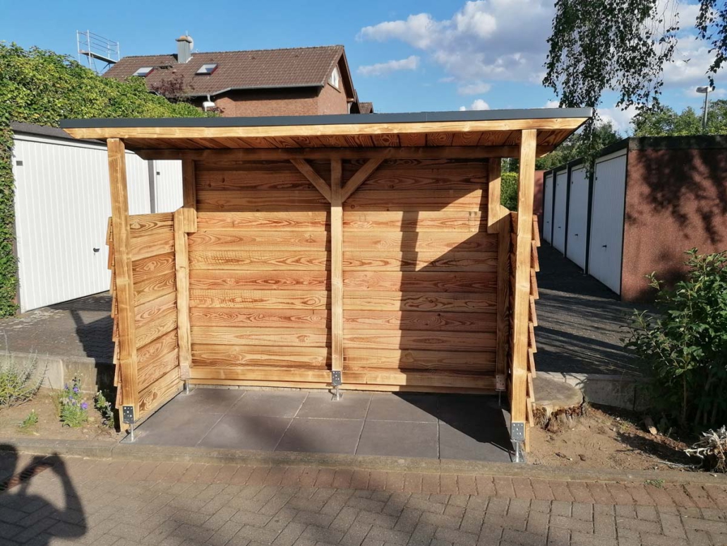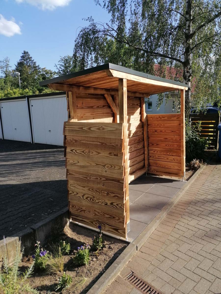 Für mehr Ordnung und Schutz entstand eine einfache, aber moderne Mülltonnen-Überdachung.